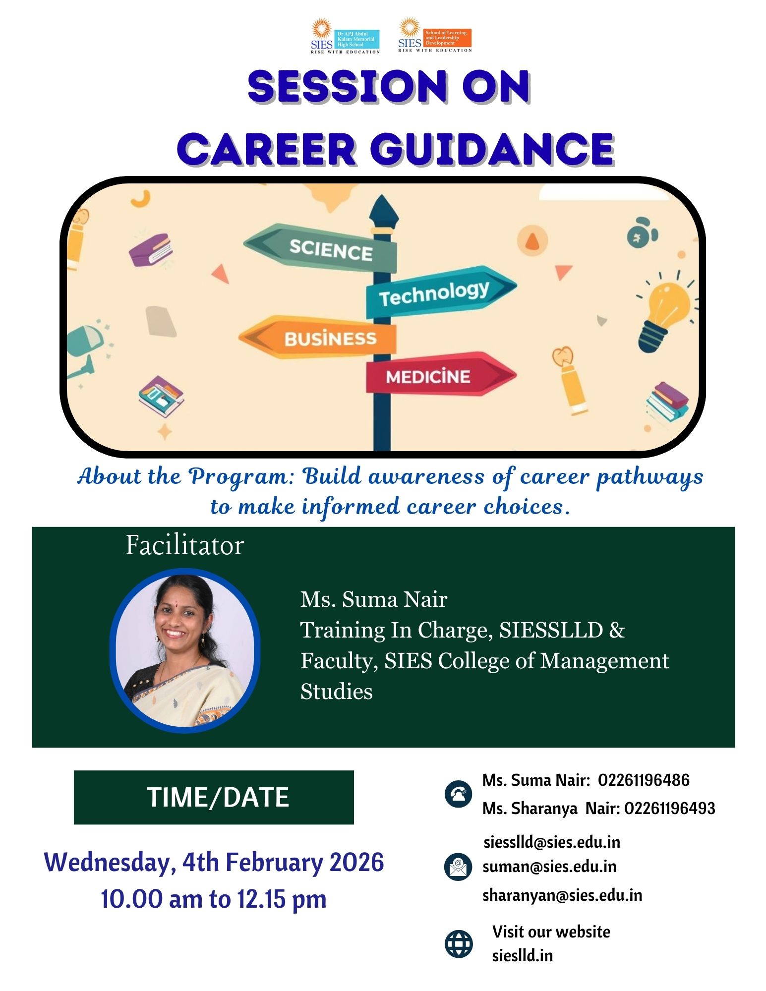 Session on Career Guidance for SIESHSM 9th Std. Students -12th Jan